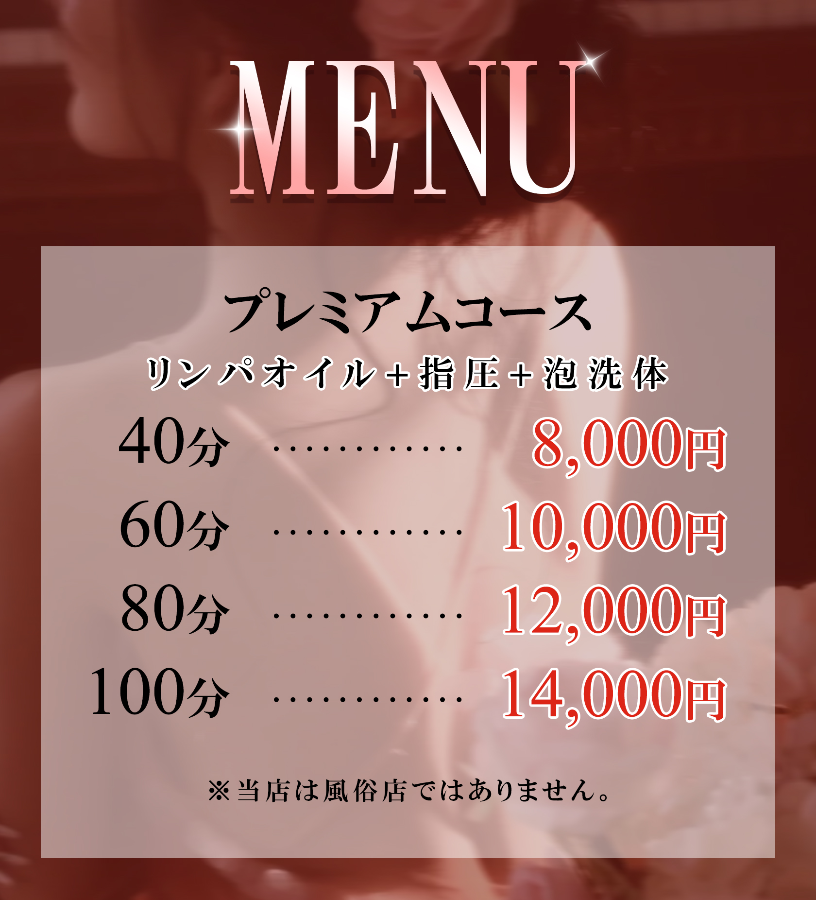毎日頑張っている紳士の皆様、日頃の疲れになっている身体と心を、幸福なる雰囲気包まれた癒しの場所、落ちついた部屋の個室で可愛いセラピスト達がお待ちしております。当店のセラピストは若く容姿端麗にこだわりました、まるで蜜のように甘く幸せな空間でゆったりとした時間をお過ごし下さい。